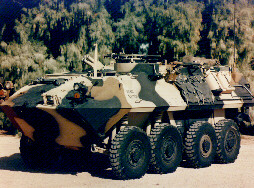Features: The LAV-M is an all-terrain, all-weather vehicle with night capabilities. It is air transportable via C-130, C-141, C-5 and CH-53 E. When combat loaded there are 5 ready and 94 stowed 81mm bombs as well as 200 ready rounds and 800 stowed rounds of 7.62mm ammunition. There are 8 ready rounds and 8 stowed rounds of smoke grenades. The base plate and bipod for ground mounted mortar is stowed on the vehicle. The vehicle can be made fully amphibious within 3 minutes.