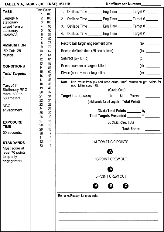 Figure 12-19. Sample Scoresheet--Table VIA, Task 2 (Defense) (M2 HB).