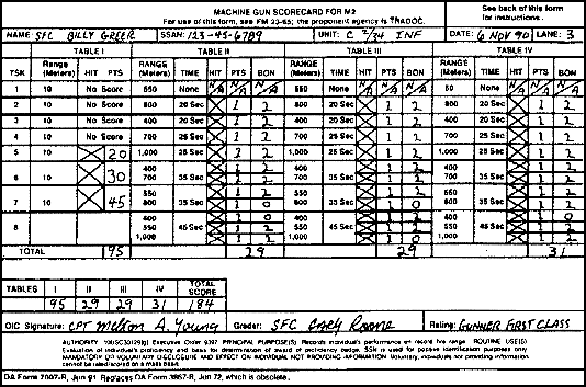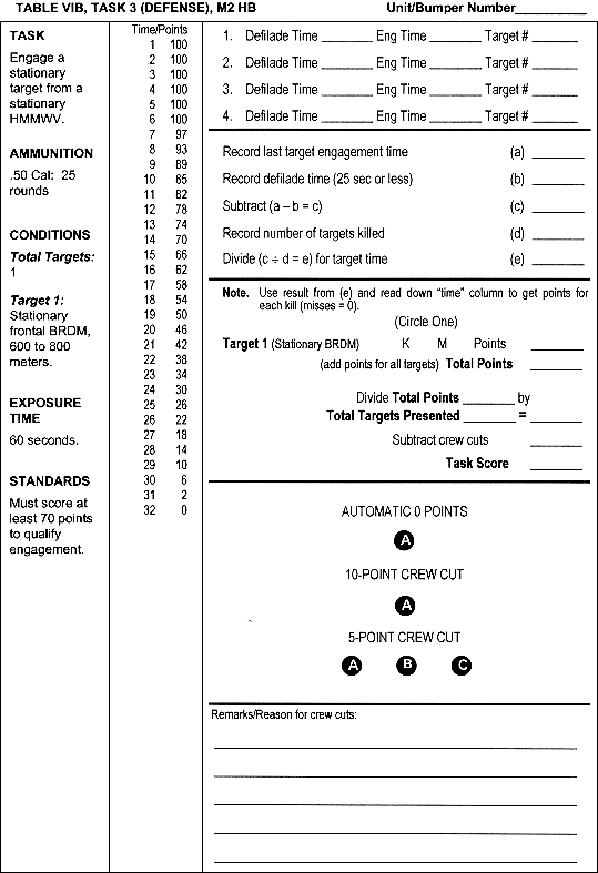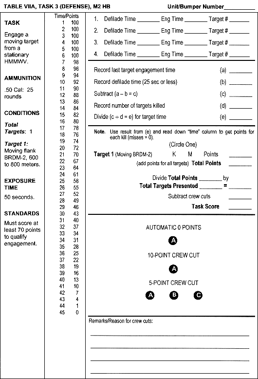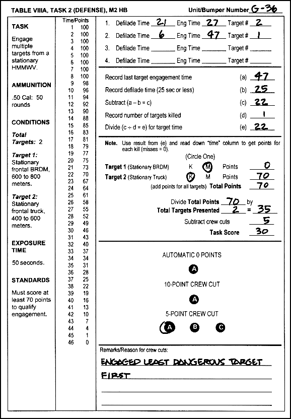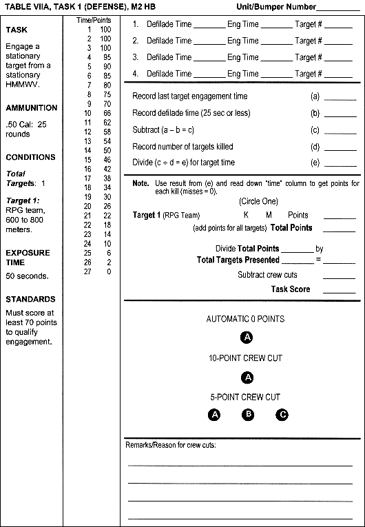 Figure 12-27. Sample Scoresheet--Table VIIA, Task 1 (Defense)(M2 HB).