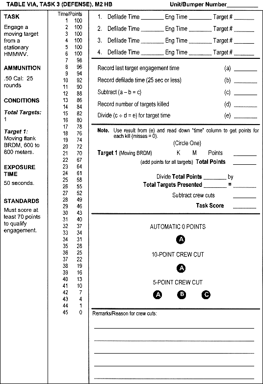 Figure 12-20. Sample Scoresheet--Table VIA, Task 3 (Defense) (M2 HB).