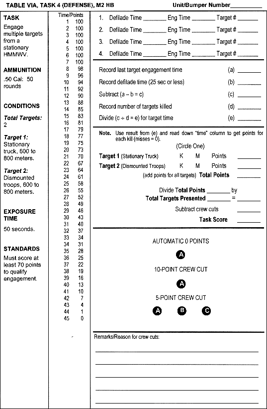 Figure 12-21. Sample Scoresheet--Table VIA, Task 4 (Defense) (M2 HB).
