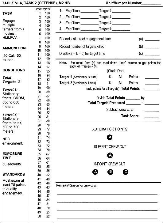 Figure 12-28. Sample Scoresheet--Table VIIA, Task 2 (Offense)(M2 HB).