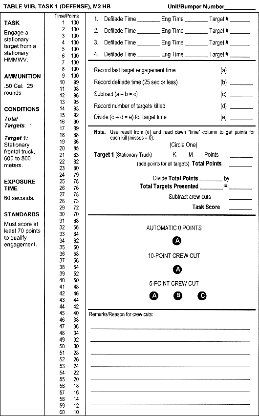 Figure 12-31. Sample Scoresheet--Table VIIB, Task 1 (Defense)(M2 HB).