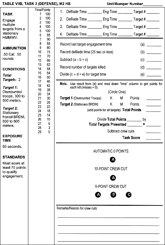 Figure 12-29. Sample Scoresheet--Table VIIA, Task 3 (Defense)(M2 HB).