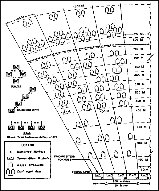 | 2. Engage multiple targets (moving). | One stationary frontal BRDM, 600 to 800 meters and one stationary frontal truck, 500 to 700 meters. NBC environment. | 50 rds | Point Point |