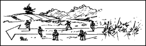 The traversing method of engagement is used to engage area targets along their front or length. The gunner moves the beaten area across the length of the target. The traversing method is also used to engage area targets moving across the sector of fire (see Figure 6-1).