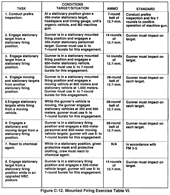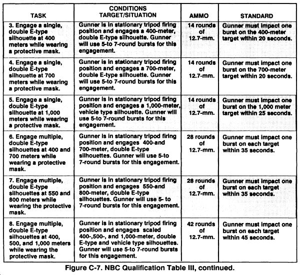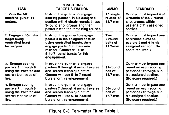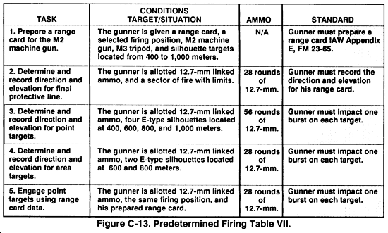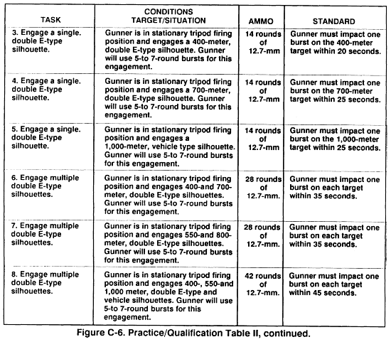 NOTE: These tasks are fired from the tripod firing position. If the gunner shows difficulty in manipulating the weapon, remove him from the firing line and give him remedial training.