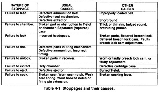 A stoppage is any interruption in the cycle of operation caused by the faulty action of the gun or ammunition. Stoppages are classified as follows: