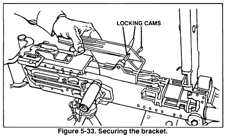 He pushes the three locking cams to secure the bracket (Figure 5-33) and closes the top cover assembly.